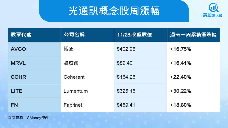 美股熱門光通訊概念股名單