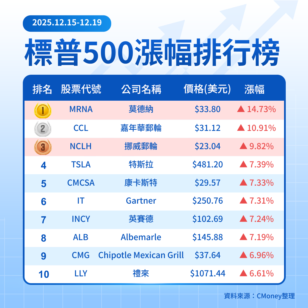 過去一週標普 500 成分股漲幅排行 Top 10(12/15-12/19)