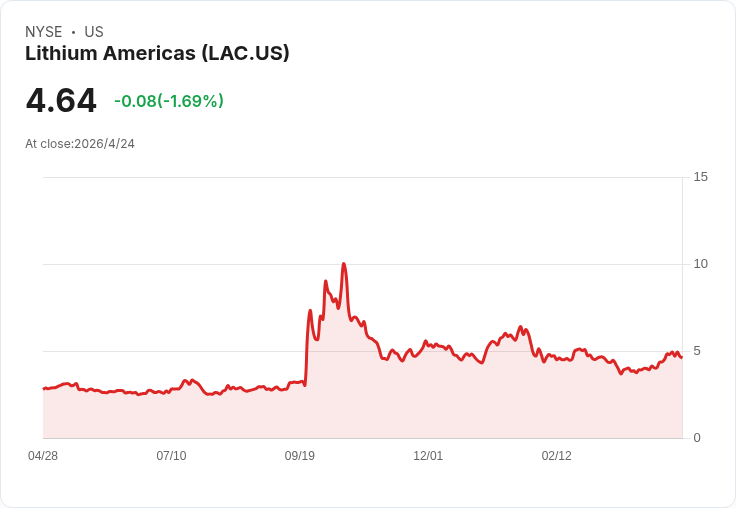 開頭誘引: 即便獲得美國政府規模性的支援,Lithium Americas(LAC)仍自資金承諾以來下跌18.7%,成為近期受政府資助公司中的最弱勢個股——這個反差引發市場疑問:政府背書是否等於投資安全?還是反而揭示更大的執行風險?