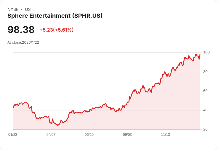 BTIG將Sphere娛樂公司的投資評級從「中性」上調至「買入」,推動其股價大漲近6%。分析師預測該公司未來盈利能力將顯著提升。