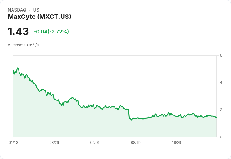 截至2025年12月31日,MaxCyte的總現金、現金等價物及投資預計約為1.556億美元,顯示出公司具備強勁的財務基礎。隨著市場需求上升,MXCT股價在盤前交易中上漲了3.496%,目前報價為1.48美元。