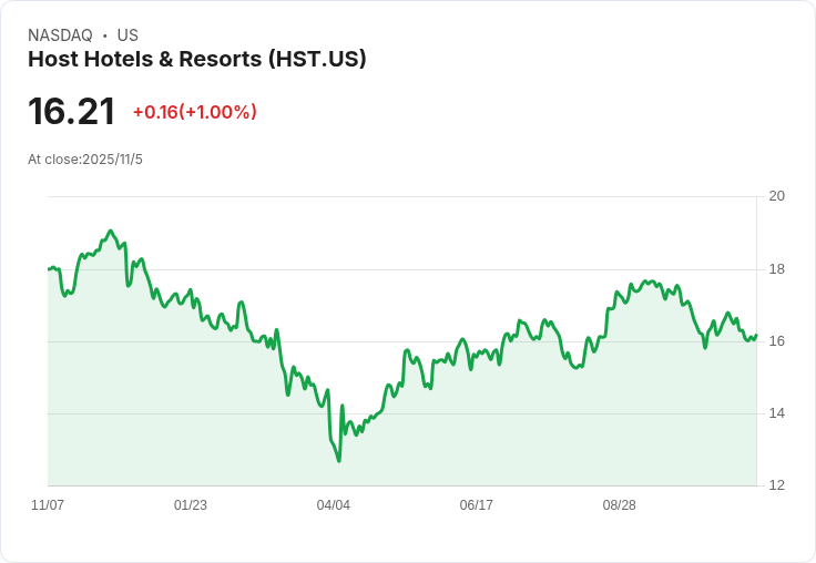 Host Hotels & Resorts, Inc.是一家美國領先的酒店房地產投資信託基金(REIT),專注於擁有和管理高階酒店物業。公司擁有多元化的酒店組合,涵蓋全美主要城市和度假勝地,並與知名酒店品牌合作,如萬豪、希爾頓和凱悅。Host Hotels以其卓越的資本配置策略和強大的財務實力而聞名,致力於透過資產最佳化和市場機會創造股東價值。