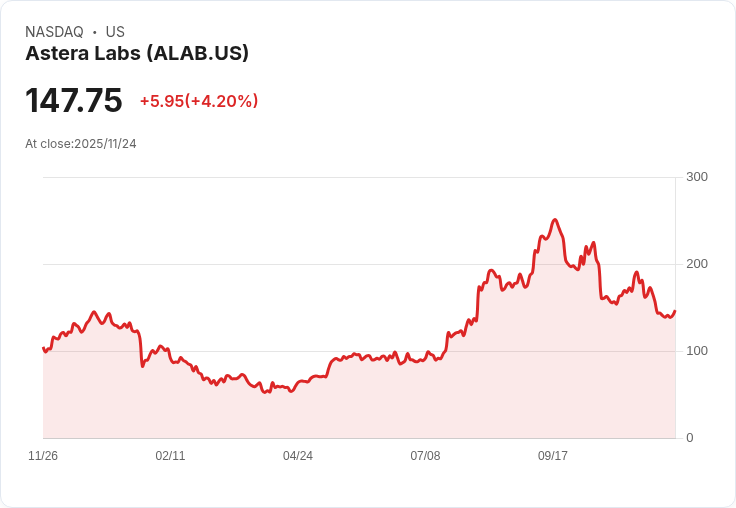 Astera Labs, Inc.(NASDAQ:ALAB)近期受到華爾街的關注。11月20日,Raymond James對該股評級為市場表現,並未設定目標價。分析師指出,隨著生成式人工智慧(GenAI)的需求增長及其在PCIe領域的領導地位,使得ALAB展現出投資機會。然而,目前股價似乎已達合理估值,長期競爭壓力依然存在。