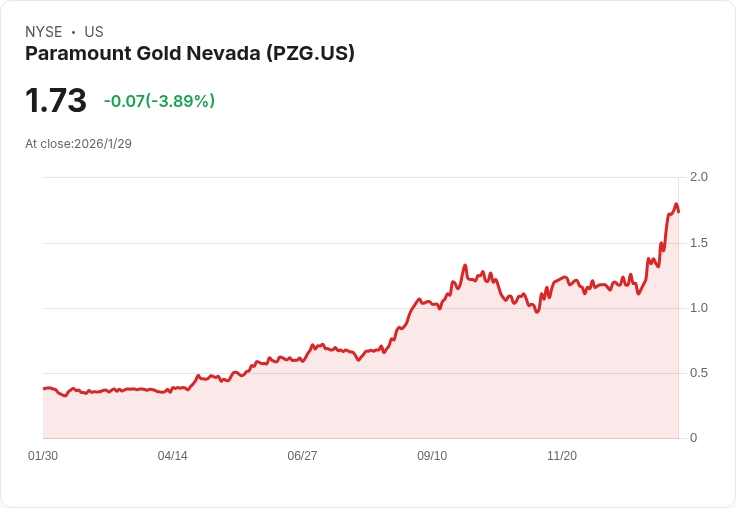 在市場收盤後,帕拉蒙特金礦(Paramount Gold Nevada, PZG)股價飆升37.5%,這一切都源於該公司成功獲得美國土地管理局對其位於俄勒岡州的格拉西山金礦項目的記錄決定(Record of Decision)。此舉標誌著聯邦環境審查程式的完成,根據《國家環境政策法》(NEPA)的要求進行。