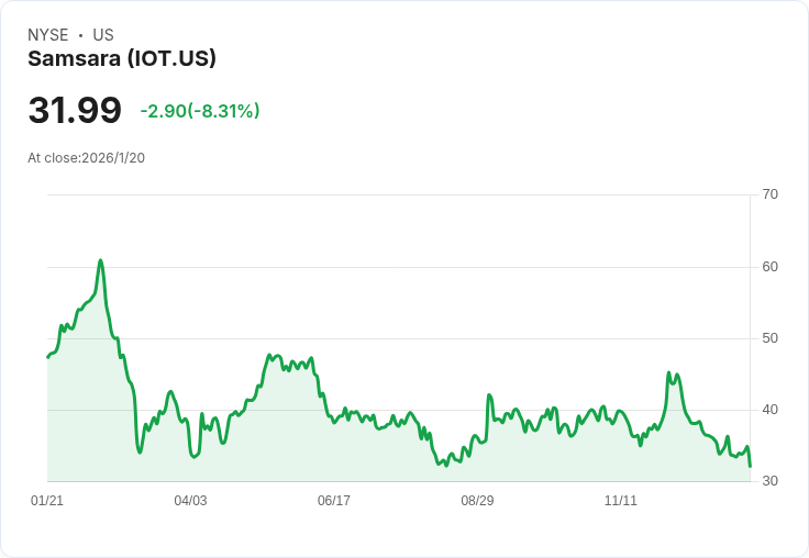 在全球貿易緊張的背景下,蘇姆莎公司(Samsara Inc., NYSE:IOT)於週二股價驟降8.31%,收盤報31.99美元,僅距離其52週低點31.40美元相差0.51美元。此次股價下跌與總統特朗普宣佈對八個歐洲國家徵收10%新關稅有關,引發市場恐慌,導致華爾街主要指數出現大幅回落。