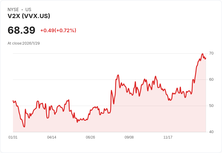 在最新消息中,V2X Inc.(VVX)股價微幅上漲0.3%,這是因為美國聯邦索賠法院駁回了AAR Corp.(AIR)對空軍T-6合約的抗議。根據Truist分析師託比·索默的報告,此決定讓V2X能夠繼續推進該計畫。他指出,由於政府關閉,抗議決策曾一度延遲。