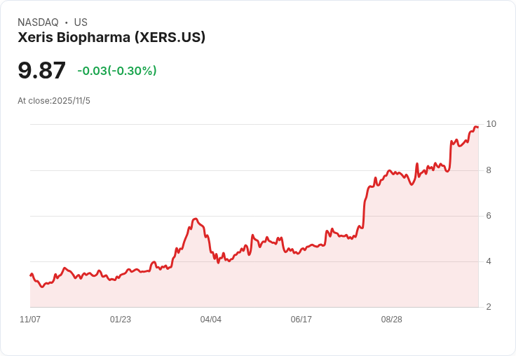 Xeris Biopharma在Q3報告中顯示總產品收入達7400萬美元,並將2025年營收預測上調至2.85億至2.9億美元,主要得益於RECORLEV的強勁表現。