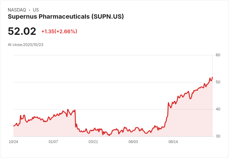 目前,Supernus的股價為52.02美元,而市場對其公平價值的估算為55.20美元,暗示該公司仍有小幅上漲空間。隨著投資者情緒高漲,Supernus是否仍被低估成為焦點問題。然而,值得注意的是,Supernus的本益比達到45.2倍,遠高於行業平均的18.5倍,這可能意味著評價風險存在。