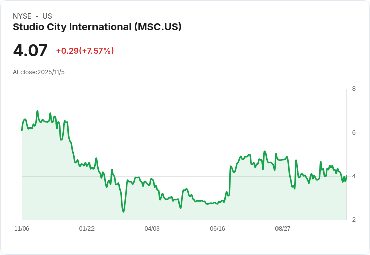 Studio City International(MSC)近日發布其2025年第三季度的財務報告,引起市場關注。儘管該公司報告了每股虧損0.024美元,但總營運收入卻顯示出積極的增長趨勢,從2024年的1.746億美元提升至1.825億美元,主要得益於大眾市場業務表現改善,促進了來自賭場合約的收入增加。