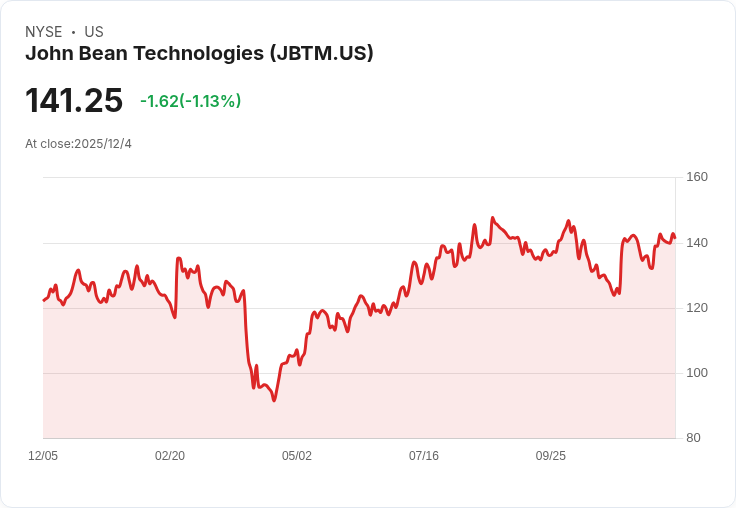 JBT公司宣佈每股$0.10的季度股息,於12月29日支付,顯示其穩定的財務表現。