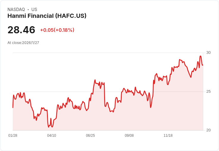 Hanmi Financial 公佈2025年第四季財報,淨利達2120萬美元,顯示出穩定的貸款增長及資產質量優異。
