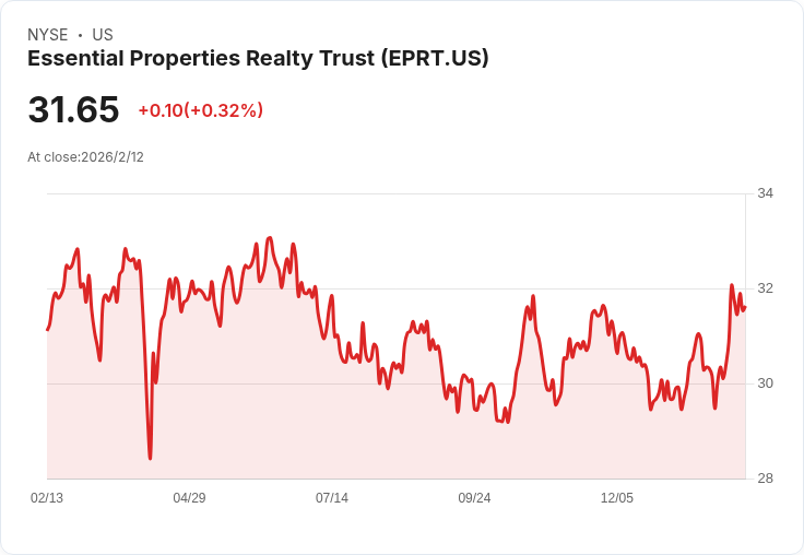 Essential Properties Realty Trust宣佈將2026年每股AFFO指引上調至1.99至2.04美元,預示著約7%至8%的成長,並強調其投資策略的成功。