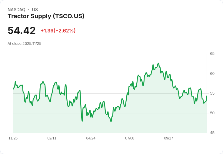 新聞:Evercore ISI 最近對 Tractor Supply Company (NASDAQ:TSCO) 進行了評級調整,將其從「持平」上調為「優於大盤」,同時將目標股價提高至65美元。分析師指出,該公司的客流量趨勢正在改善,成長計劃獲得動能,且目前的股票估值提供了一個引人注目的入場點。