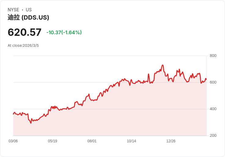 Dillard's專注於南部和西部的百貨商店,其銷售表現疲軟且無法開設新店,顯示出需求不足。過去兩年的同店銷售表現不佳,使得每筆銷售的利潤逐年下降,EPS更是年減10.4%。目前股價613.12美元,預估市盈率達19.7倍。