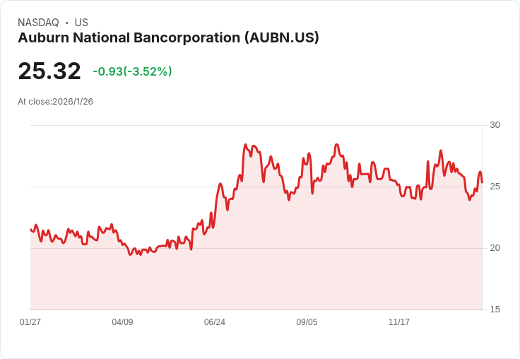 奧本國家銀行公佈2025年第四季業績,每股盈餘0.48美元、營收846萬美元,顯示穩健成長。