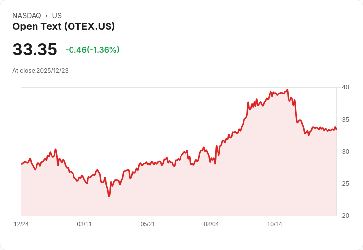 花旗集團近日宣佈將OpenText(OTEX)的目標股價從38美元下調至36美元,同時保持對該公司的中立評級。分析師表示,這一調整是基於與管理層的會議後,重新評估應用軟體行業的模型。目前企業面臨著穩定卻充滿不確定性的需求環境,但美國政府重啟運作為市場帶來了一些緩解。