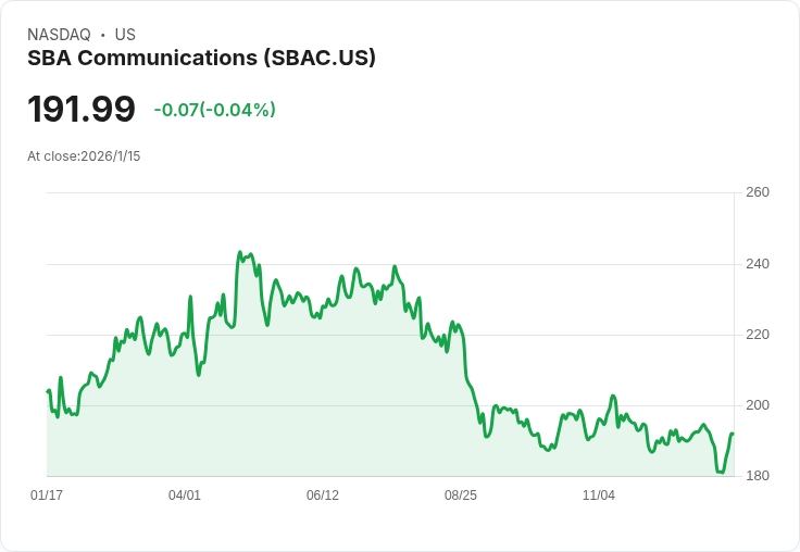 此外,Wells Fargo也隨之調整了其對SBAC股票的目標價,從215美元降至205美元,但仍然給予“等權重”的評級。他們指出,考慮到DISH租約的較短期限,SBA Communications在2026年的前景相對明朗。然而,該公司增長面臨的一些挑戰已經在現有預測中有所體現。
