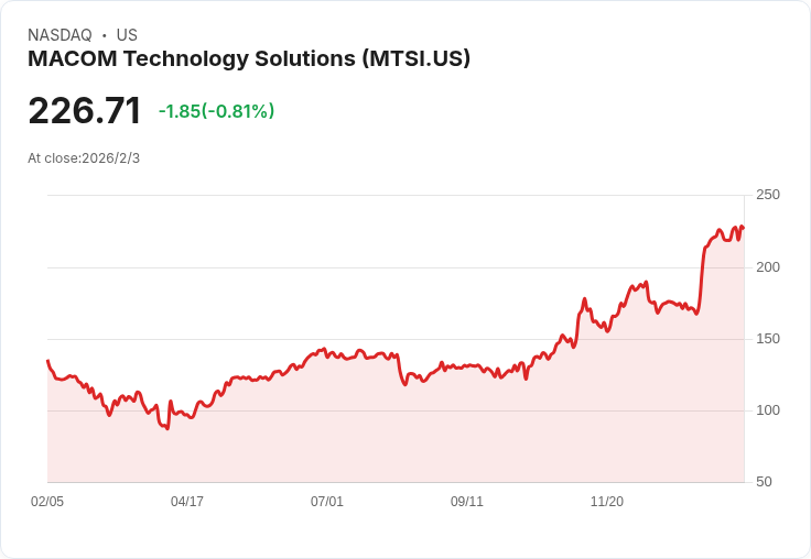 MACOM科技預計於2月5日公佈Q1財報,市場預期每股盈餘達1.00美元,營收269.02百萬美元,顯示出穩健的增長趨勢。