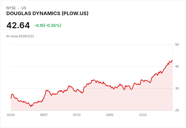 新聞:道格拉斯動力(Douglas Dynamics)近日公佈了其第四季度的財務報告,非GAAP每股盈餘為0.62美元,超出市場預測的0.52美元。公司總收入達到1億8450萬美元,同比增長28.6%,同樣高於預期的1億8300萬美元。此外,調整後的EBITDA也上升37.2%至2580萬美元,顯示出公司的強勁表現。
