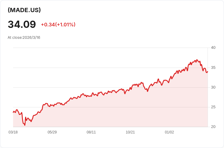 iShares美國製造業ETF (MADE) 宣佈將於3月20日支付每股0.0335美元的季度配息,吸引關注。