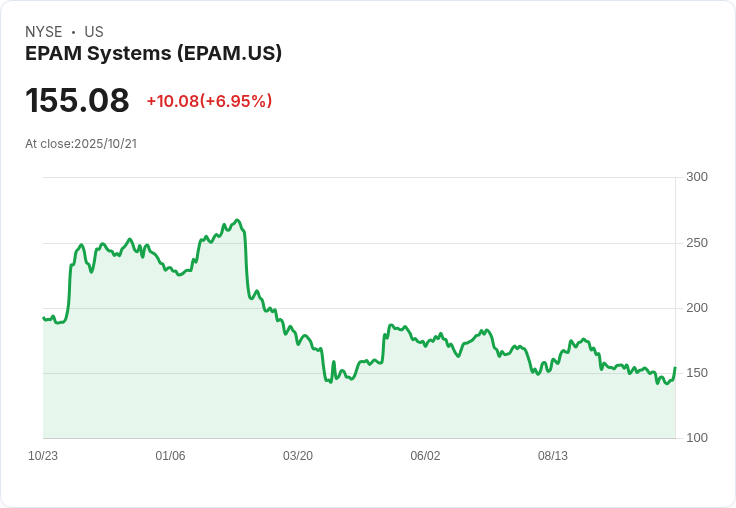 Wells Fargo對EPAM Systems給予Overweight評級,預測其有機收入增長加速及估值具競爭力,目標價定於185美元。
