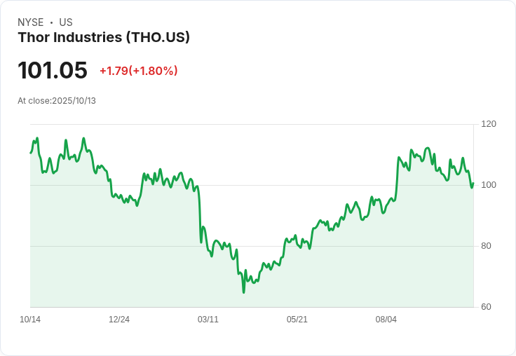 最近,THOR Industries(THO)的股價吸引了投資者的注意,儘管並無特定新聞催化劑,其股價今日小幅上漲1.8%。這一變動引發了關於背後原因的討論。根據最新資料,THOR Industries在過去三年內為股東帶來了35%的總回報,雖然一年期的總回報略有下降,但股價波動顯示出市場情緒的起伏。