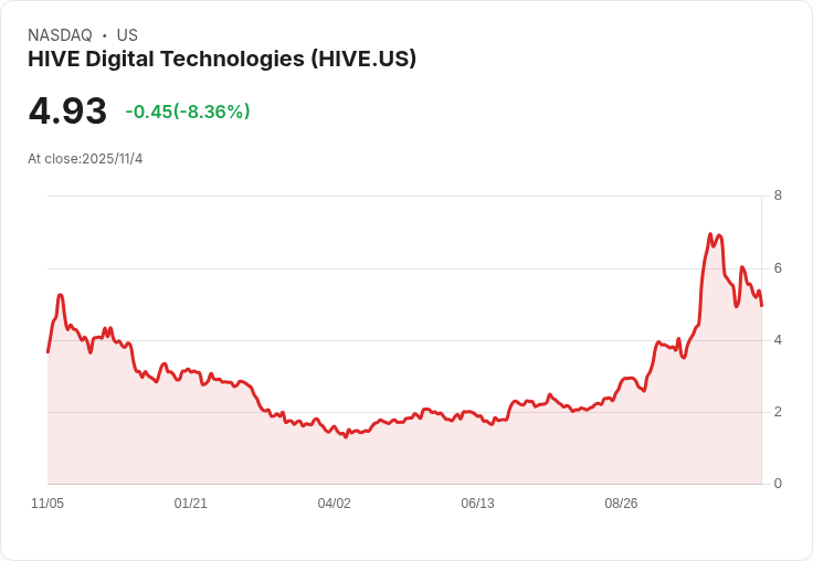 即便AMD發布了優於預期的第三季結果,並預測第四季營收可達93億至99億美元,股價仍下跌5%。同時,加密貨幣相關股票如HIVE Digital Technologies也隨著位元幣價格進一步下滑而受到影響,顯示出市場對這些風險資產的避險情緒持續加劇。