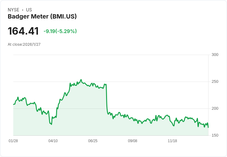 Badger Meter 公佈第四季財報,每股盈餘 $1.14 超過市場預測,但營收 $220.7M 未達預期,股價下跌 1.5%。