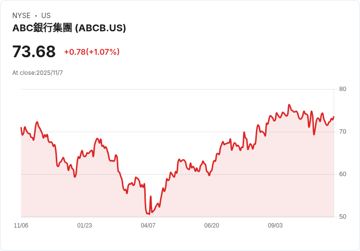 除了上述REIT運作,高成長型地區銀行Ameris Bancorp(ABCB)也因股價近一個月上漲4%,五年報酬率攀升至123.76%備受投資人青睞。儘管AMERIS現價尚未達分析師認定合理價位,但其本益比高於同業,投資人對其長期獲利穩定抱持厚望,唯存款競爭加劇與放款需求周期性下滑仍為潛在隱憂。