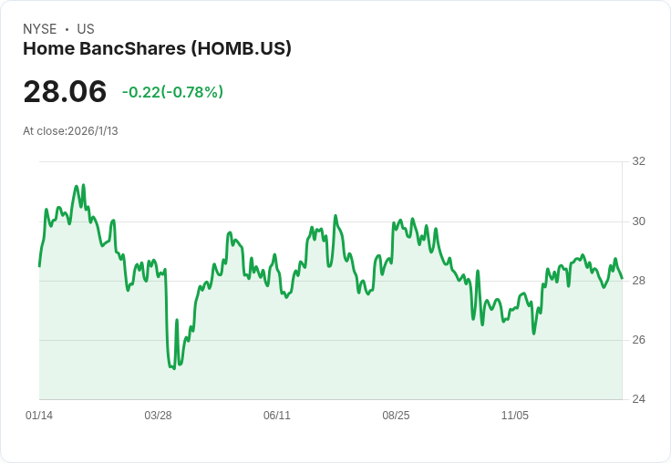 Home BancShares(HOMB)定於1月14日市場收盤後發布其2025年第四季的財報。根據分析師預測,公司每股盈餘(EPS)估計為0.60美元,較去年同期成長20%,而營收則有望達到2.7248億美元,年增5.4%。過去兩年中,HOMB在EPS預測上超出預期的機率高達75%,而在營收方面更是88%的成功率。