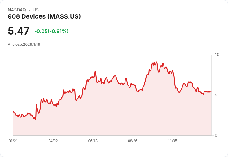 受此訊息影響,908 Devices的股價在盤前交易中上漲5.8%,達到每股5.79美元,顯示出投資者對未來業績的樂觀情緒。