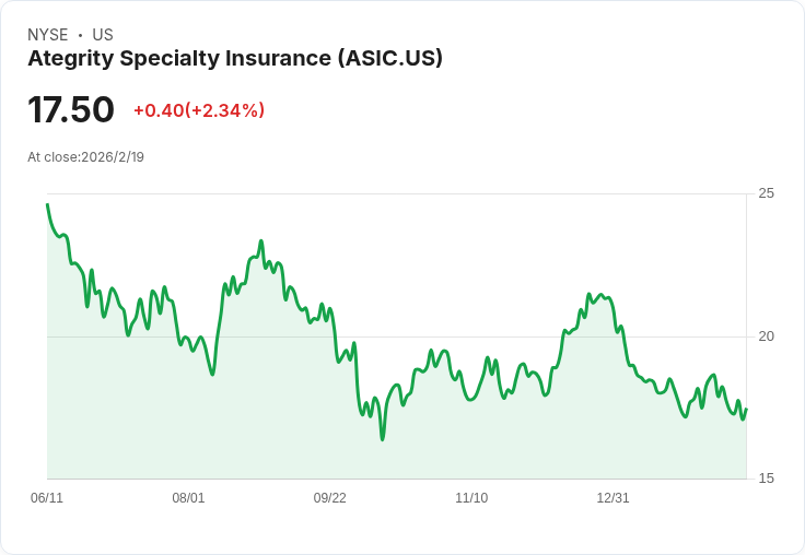 Ategrity Specialty (NYSE:ASIC) 公佈的2025財年第四季財報顯示,公司在保險業務上表現優異,實現了多項記錄,包括毛保費年增30%及調整後淨收入達2540萬美元(每股0.51美元)。首席執行官Justin Cohen表示,此次成績反映出公司在核心專業領域的強勁增長以及擴充套件中的分銷網路。