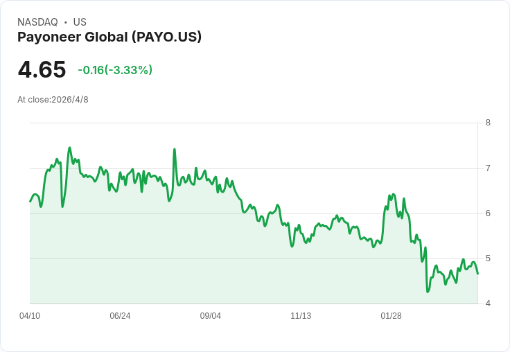 Payoneer近期股價出現劇烈修正,過去六個月下跌約23.2%,目前報價約4.66美元,令持股人重新評估投資策略。這次回檔是否代表買入機會,需從公司基本面、估值與風險三方面檢視。