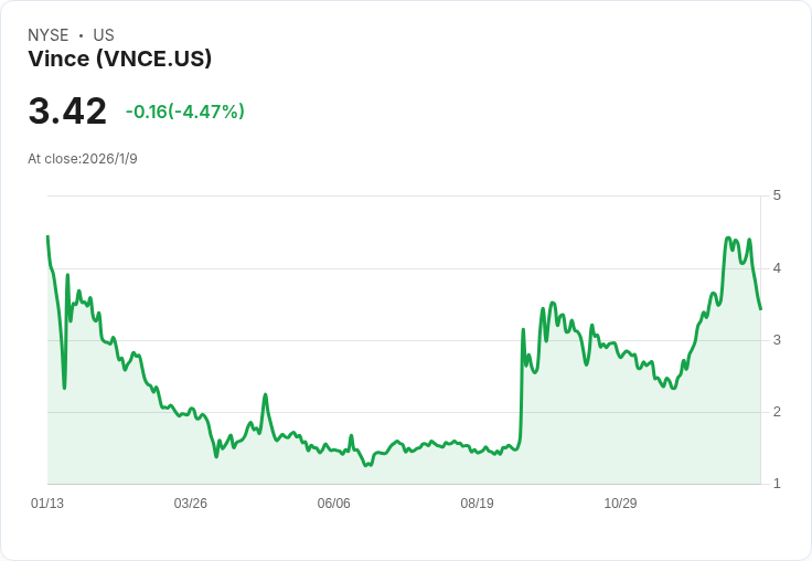Vince Holding(NASDAQ: VNCE)於週一宣佈,截至2026年1月3日的九週假日期間,公司的總淨銷售額較去年同期增長了5.3%。其中,直營業務的銷售增幅達到9.7%,顯示消費者對品牌的需求持續上升。然而,批發業務的銷售卻下降了2.7%,反映出市場競爭激烈及零售環境變化帶來的挑戰。儘管整體銷售有所提升,但該公司股價仍下跌11.84%,引起投資者關注。