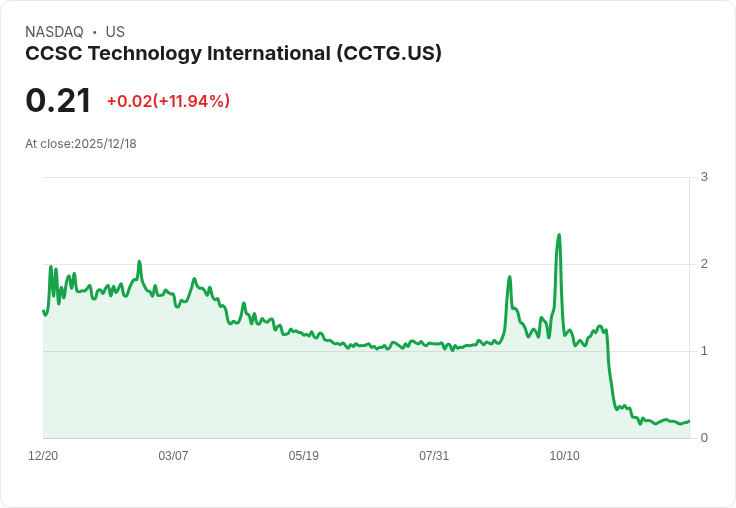 為了重新獲得合規資格,納斯達克已給予CCSC180天的寬限期,直到2026年6月15日,期間須保持至少10個連續交易日的收盤價格高於1.00美元。CCSC表示,如有必要,將考慮包括反向股票分割在內的選項,但強調此次通知對其業務運營並無影響。目前,CCTG的股價下跌7.38%,收於0.1945美元。