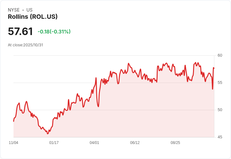 Rollins, Inc.是一家全球領先的害蟲控制服務提供商,旗下擁有多個知名品牌如Orkin、HomeTeam Pest Defense和Western Pest Services。公司專注於提供住宅和商業客戶的害蟲防治、白蟻控制及相關服務。Rollins以其卓越的客戶服務和創新的解決方案而聞名,致力於透過戰略併購和內部增長來擴大其市場份額。