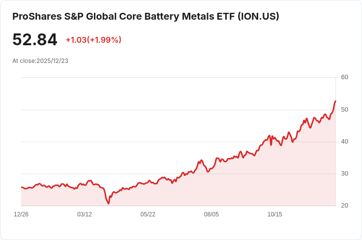 Proshares S&P Global Core Battery Metals ETF(程式碼:ION)近日宣佈其即將發放的季度分配,引起市場關注。這項分配金額為每股$0.3402,預計將於2025年12月31日支付給符合資格的股東。根據公告,股東必須在2025年12月24日之前登記,並且該日期也是除息日。