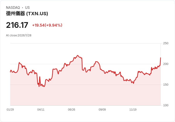 在週三的交易中,德州儀器(Texas Instruments,簡稱TI)的股價飆升9.9%,結束於每股XX美元。該公司在週二晚間公佈了2025年第四季度的財報,儘管營收和獲利均略低於市場預期,但投資者對未來展望充滿信心。