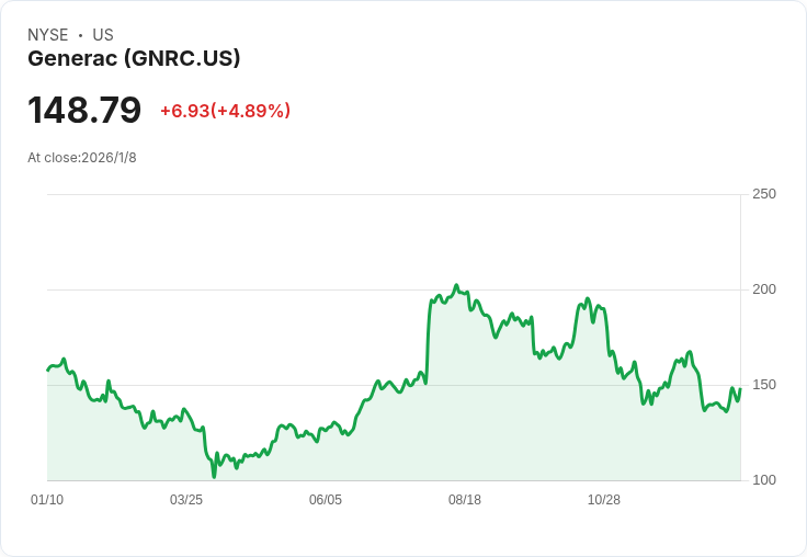 在最近的交易中,Generac(GNRC)股價上漲2.5%,因Baird將其評級從中立上調至「優於大盤」,並設定了199美元的目標價。分析師Michael Halloran指出,Generac進軍大型柴油發電機市場不僅是戰略上的重要步驟,也可能帶來顯著的財務收益,尤其是在資料中心和傳統商業及工業客戶方面。根據早期結果,該部門有望在2027年至2028年之間實現4億至8億美元的收入增長,而市場共識則偏向低端預估。