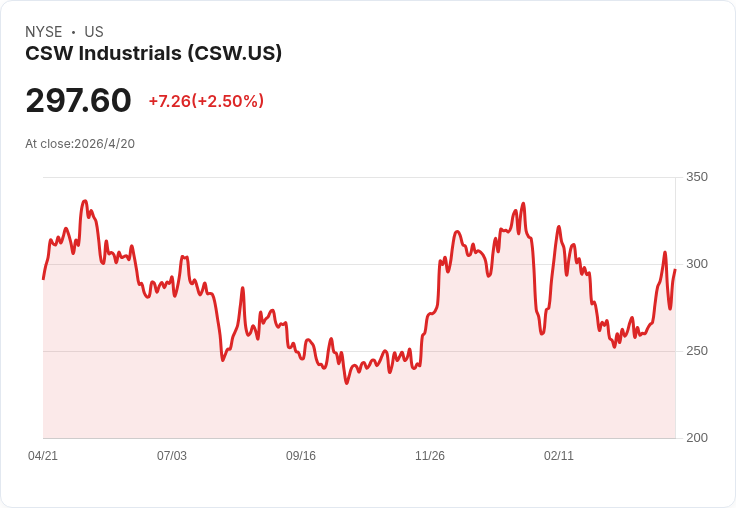 - CSW (CSW):以特殊化學品、塗料、密封劑與潤滑劑為主的製造供應商,過去五年年均營收成長 21.2%,近兩年每股盈餘年增 20.5%,並展現強勁自由現金流與提升的現金轉換率。以每股 $294.16 計算,遠期本益比約 26.2 倍。優勢是利基產品帶來較高毛利與議價能力;風險則來自原料價格波動、工業需求迴圈與產能投資節奏。投資人應關注毛利率維持狀況與資本支出效率。