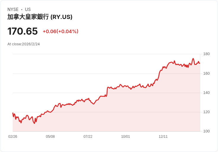 皇家銀行(Royal Bank of Canada, RY)定於2月26日星期四,在市場開盤前公佈其2026年第一季的財報,此次財報受到投資者的高度關注。根據市場共識,預計該行每股盈餘(EPS)將達到C$2.77,而總營收則有望達到C$126.6億。