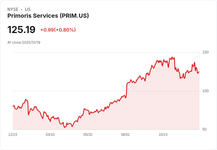 隨著Informed Momentum投資公司於2025年11月14日宣佈增持67,981股Primoris Services Corporation(NYSE:PRIM),其持股市值達918萬美元,佔管理資產的1.05%。這一新持倉使得Primoris成為該基金第四大持股,顯示出對公司的信心。根據最新資料,Primoris在過去一年中股價上漲50.2%,並且第三季度營收達到22億美元,同比增長32%。