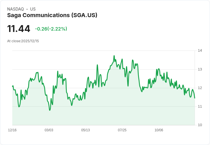 Saga Communications於週一宣佈,其成功回購了184,215股普通股,總金額約為210萬美元,每股價格為11.50美元。這次回購行動代表著該公司目前流通股的2.8%,根據2025年12月11日的資料,Saga的流通股總量為6,556,621股。