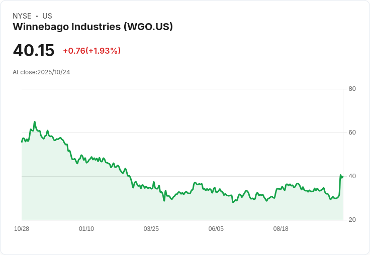 Winnebago Industries(WGO)近日發布的第四季度財報令人驚喜,顯示出產品組合改善、價格策略調整和運營效率提升所帶來的正面影響。公司重返正現金流並改善了槓桿狀況,這些因素推動股價在短短一週內飆升超過33%。然而,儘管近期表現亮眼,Winnebago的1年總股東回報率仍然為-22.0%,顯示長期投資者尚未彌補之前的損失。