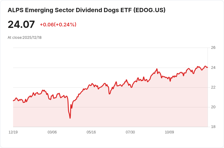 ALPS Emerging Sector Dividend Dogs ETF(程式碼:EDOG)近日宣佈了其季度分配金為每單位$0.2018,這一訊息無疑讓許多投資者感到振奮。根據公告,此次分配金將於12月23日支付給截至12月18日的股東,而同一天也將成為除權日。