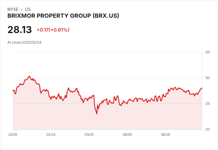 Brixmor Property於最新發布的財報中顯示,第三季度每股基金運作收益(FFO)為0.56美元,符合市場預期,而營收達到340.84百萬美元,較去年增長6.3%,且超過分析師預測的5.28百萬美元。該公司同時更新了2025年的NAREIT FFO每稀釋股預期至2.23至2.25美元,略微上調自先前的2.22至2.25美元範圍。此外,Brixmor確認其相同商店銷售指標持平,顯示出其在零售市場中的穩定性和韌性。這些資料不僅反映了公司的健康狀態,也強化了投資者對未來成長的信心。儘管面臨行業挑戰,Brixmor仍展現出優異的經營能力,未來將繼續專注於擴大其資產組合及提升租金收入,以應對市場變化。