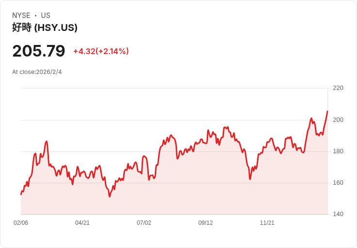 Hershey Company是一家全球知名的巧克力和糖果製造商,以其標誌性的Hershey's和Reese's品牌而聞名。公司總部位於美國賓夕法尼亞州,產品涵蓋巧克力、糖果、零食等多個品類。Hershey致力於透過創新和品牌建設來保持其在市場中的領先地位,並積極應對市場挑戰以實現持續增長。