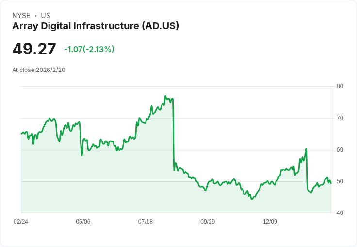 目前,Array Digital的股價為51.24美元,過去一年下跌約25%。不過,該公司的財務表現卻令人矚目,第四季度的營收從去年同期的2610萬美元激增至6030萬美元,而2025年的全年收入更是同比增長58%達到1.63億美元,淨利潤也實現了扭虧為盈。