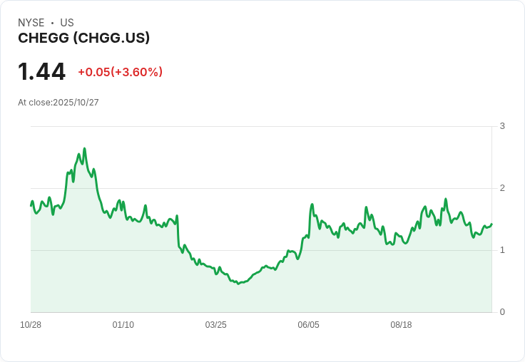 值得注意的是,在四月,Chegg曾面臨紐約證券交易所的退市風險,當時股價約為60美分;但到五月底,股價已重新回升至1美元以上。