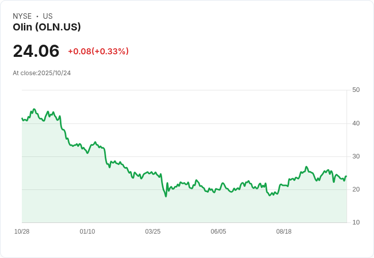 Olin公司第三季每股盈餘表現亮眼,但營收略低於市場預期,導致股價在盤後交易中下跌5.2%。